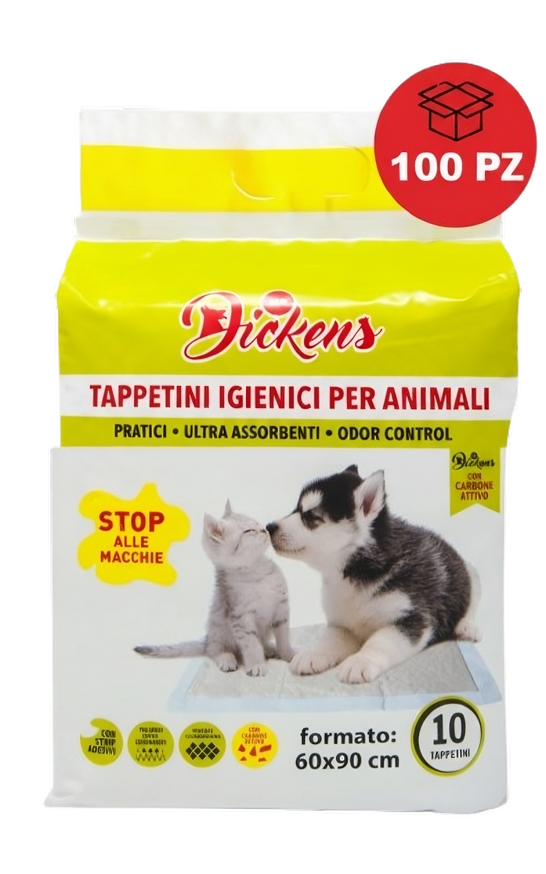 Home Tappetini igienici Tappetini Igienici Dickens Carbone Attivo 60×90 -il cartone contiene n. 10 buste da 10 pezzi per un totale di 100pz